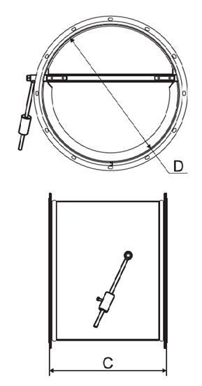 Клапан состоит из корпуса и заслонки сбалансированной противовесом позволяющим удерживать её в закрытом положении. Корпус заслонки изготавливается из оцинкованной или углеродистой стали, имеет фланцевое соединение. Заслонка или её обрамление изготавливается из алюминиевого сплава.