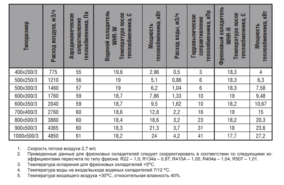 Корпуса воздухоохладителей изготовлены из оцинкованного стального листа.Теплообменник выполнен из медных труб с алюминиевым оребрением. Стандартно имеет трехрядное исполнение. Шаг оребрения составляет 2,1 мм (вместо общепринятого для наборных систем вентиляции 2,5 мм). Уменьшенный шаг позволяет существенно увеличить теплоотдачу и оптимизировать массогабаритные показатели при незначительном увеличении аэродинамического сопротивления теплообменника. Для увеличения теплоотдачи трубы механически расширены и тем самым жестко соединены с оребрением. Пайка калачей теплообменника осуществляется припоем с 2 % содержанием серебра, что обеспечивает высокое качество паяных деталей.